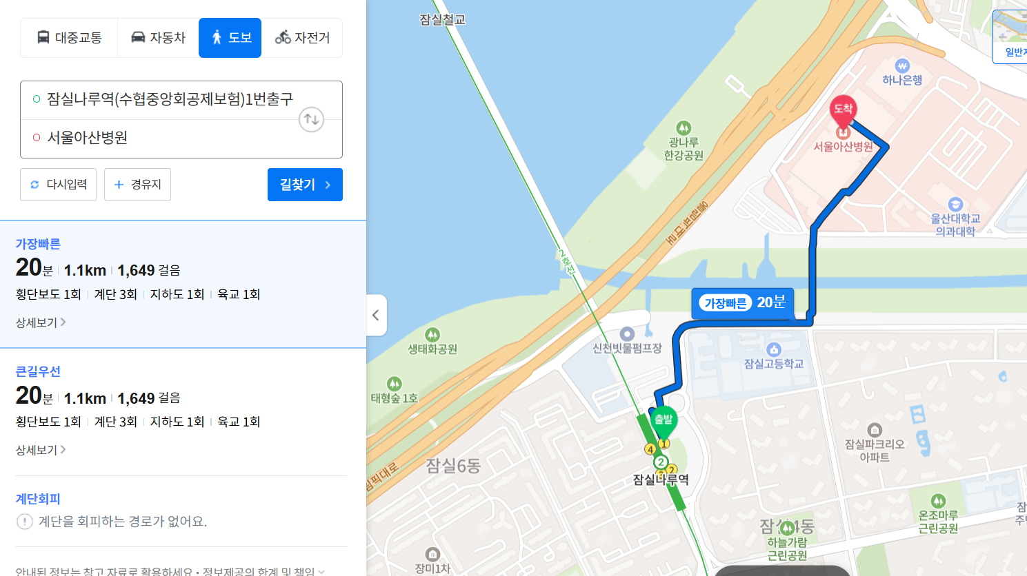 2호선 잠실나루역에서 아산병원, 장례식장 가는 방법은 2가지가 있습니다.